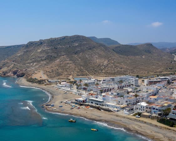 Cabo de Gata is a cape located in Níjar, Almería, in the south of the Iberian Peninsula, one of the biggest capes. It is the driest place in the peninsula (150-170 mm average precipitation, being the lowest 52mm in 1981). However, the area that it ocupates is not considered a desert, even though there is one nearby: the Tabernas Desert, located 30 km in North - West direction. The lowest temperature registered in Cabo de Gata was 0.1°C. San José, Las Negras, Agua Amarga, Isleta del Moro, Rodalquilar, San Miguel, Almadraba de Moteleva, Fernán Pérez, Las Hortichuelas, Pozo de los Frailes, Los Escullos, Níjar and Carboneras are towns found in Cabo de Gata. The lighthouse is a famous landmark. On 26 March 2008 it was declared Parque Natural. Its population in 2020 was 1,657 inhabitants (INE).